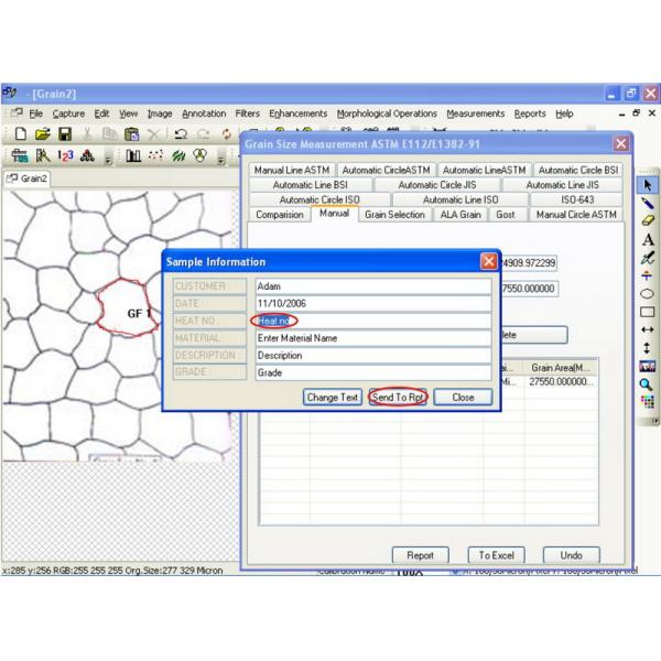- The module analyze Grain image and measure the Grain no. & Grain size using ASTM E 112 , JIS G-551, E-930, E-1181, ISO 643-03, BS 490 DIN 643-03, IS-4748-88, SIS 111101 GOST 5639-82 The options for measurement available are 1. Manual Trace, 2. Popular Comparison Method, 3. Quick single Grain measurement, 4. ALA method, 5. Interception method. Various filters to make user defined templates. Grain boundary repair mathematical function.